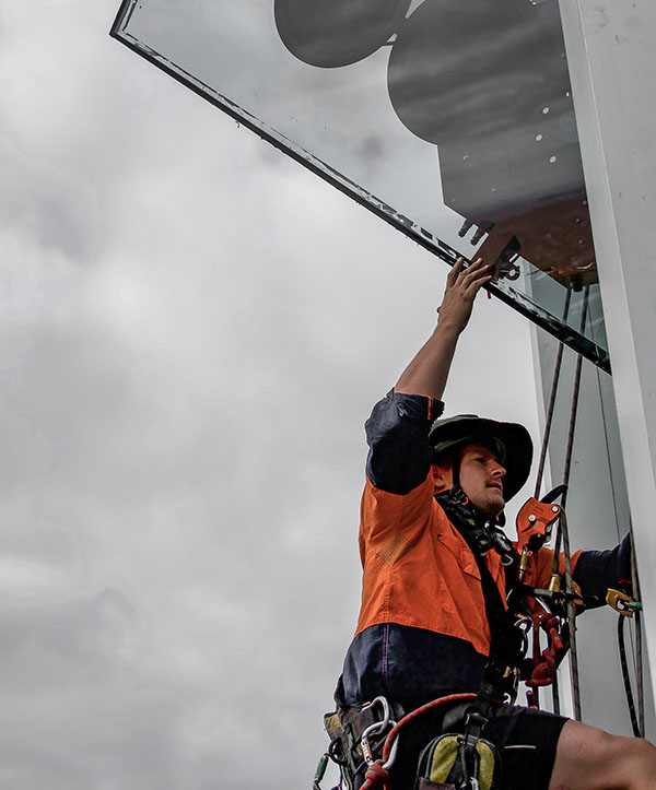 WHA provides extensive commercial glazing services including make safe and full reglaze works using qualified glaziers that are fully trained and certified rope access professionals. Our techniques and experience allow us to access glazing works from the inside, outside or both. We carry our own equipment which we can draw upon to specifically tailor your glass install works. WHA also supply, measure, make safe, and install any type of commercial glazing. We carry some of the largest capacity vacuum units and winches to haul glass via rope techniques up a facade, omitting the need for other access and service trades or cranes to lift glass into position.