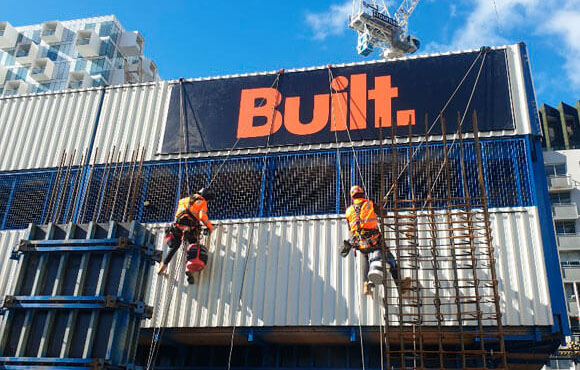 Whether on a jump form for a lift shaft construction, or on the roof of a multi-story building, our team of industrial abseilers can assist with the hauling and installation of banners and signage including the replacement of material, the maintenance of the substructure or replacement for electrical requirements on digital assets. Our procedures allow us to work in with active construction sites, or tenanted buildings without any disruption.